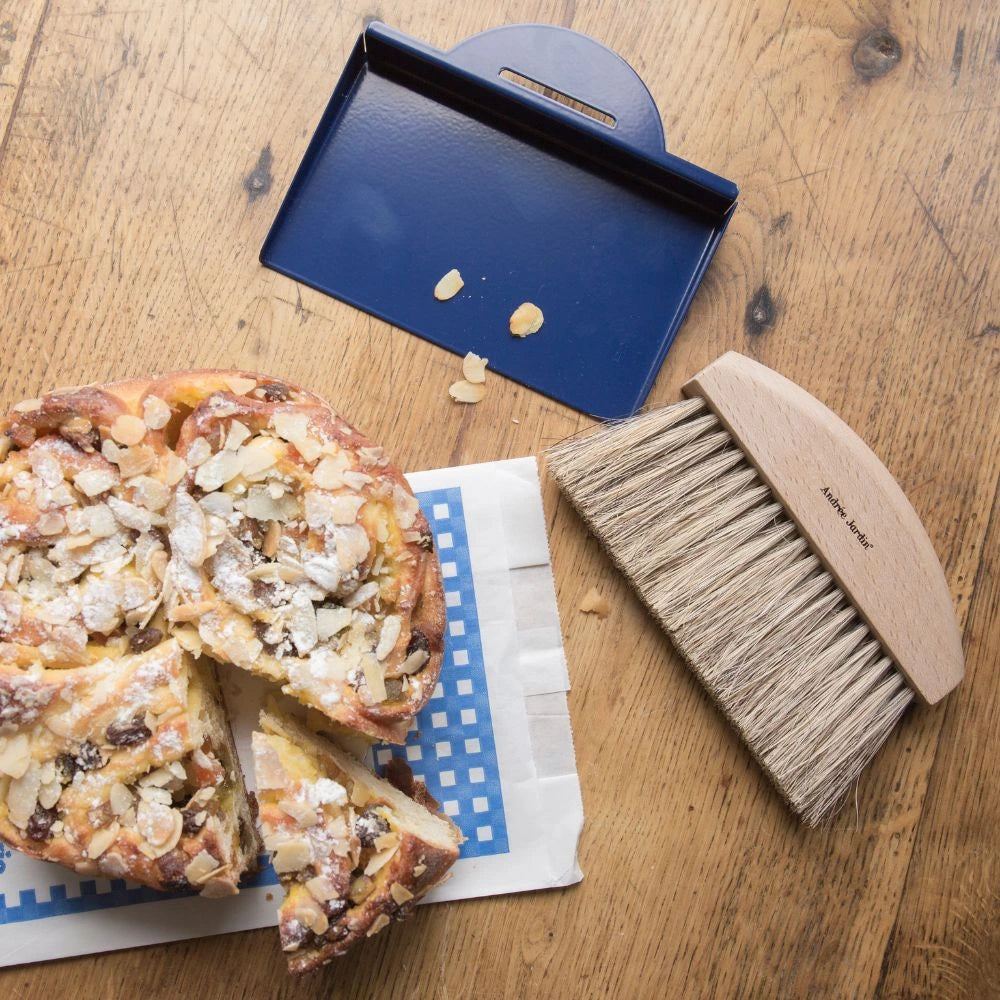 De kruimelladeset (tafelstofblik en borstel) is ontworpen door de heer en mevrouw Clynk voor Andrée Jardin om traditionele borstels een eigentijds tintje te geven.